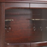 - There are two glass hangers and a glass shelf behind the glazed two doors in the top compartment.